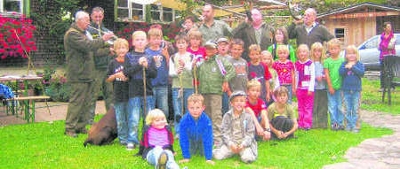 Furtwangen – Die Jagdhunde Greif und der einjährige Falk freuten sich mit den Kindern zwischen fünf und 13 Jahren auf den Ausflug ins Forst- und Jagdrevier. Als auch der Uracher Förster Michael Willmann mit Brandelbracke Karo dazustieß, konnte der Waldlauf starten. Pony Lisa, geführt von Manuela Rombach, trug abwechselnd jene Jungen und Mädchen, die vom steilen Anstieg außer Puste waren oder sich auf dem steilen und glitschigen Pfad unsanft hingesetzt hatten.