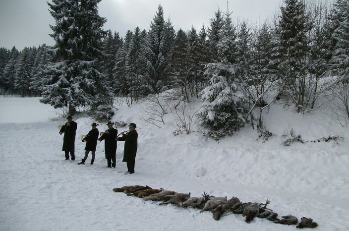 Die Jagdhornbläser des HR beteiligten sich mit den entsprechenden Jagdsignalen.