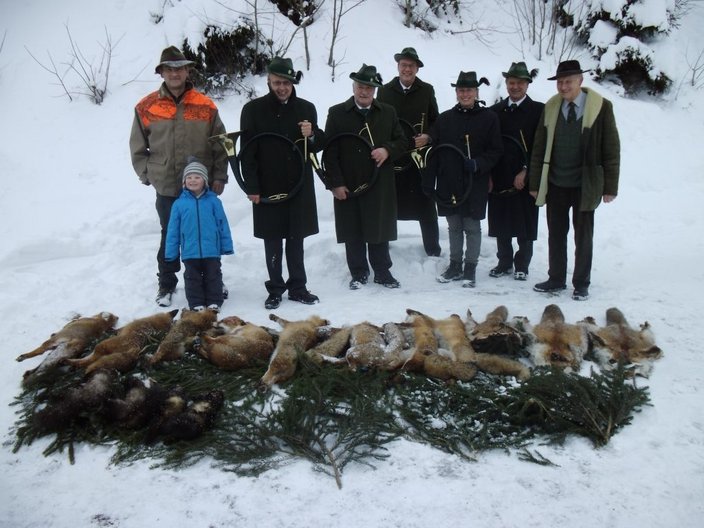 Eine Strecke von 12 Füchsen 2 Mardern und 2 Iltissen war das erfolgreiche Ergebnis, trotz schlechter Witterungsverhältnisse. Der Hegeringleiter Hans Reiner bedankte sich und stellte Fritz Haas mit dem besten Ergebnis, 3 Füchse, 2 Marder und 2 Iltisse vor. Kreisjägermeister und Landesobmann Knut Wälde bedankte sich auch im Namen des Landesjagdverbandes für die Aktivitäten hinsichtlich Arteinschutz bei den Jägern.