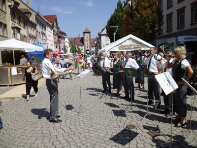 das traditionelle Weinfest des Lions-Clubs in der Villinger Innenstadt. Neben kulinarischen Köstlichkeiten - Damwildgulasch, Wildwürste etc sowie Kaffe und Kuchen - zeigten die Jagdhornbläser unter Leitung von Lothar Albrecht ihr Können.