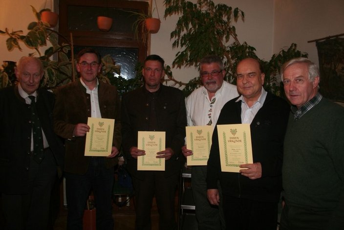 Bei dieser Gelegenheit konnte er auch vier Mitglieder des Hegerings für 25 Jahre Zugehörigkeit ehren. Sie erhielten eine Ehrenurkunde und die Treuenadel in Silber des Deutschen Jagdschutzverbandes e.V.