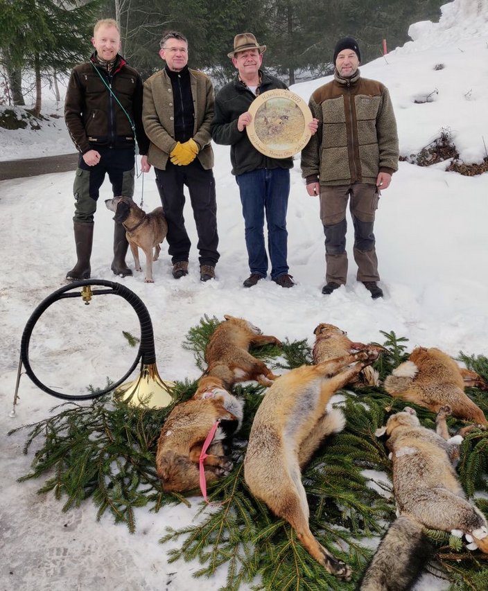 Mit dem Strecke legen am 12. Februar 2023 in Schonach schloss der Hegering Triberg seine Artenschutzwochen ab: Zur Strecke kamen insgesamt 20 Füchse und 2 Steinmarder. Das Ergebnis lag trotz guter Bedingungen deutlich unter dem des Vorjahrs.