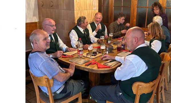 Jagdhornbläser und Jagdkameraden feiern mit